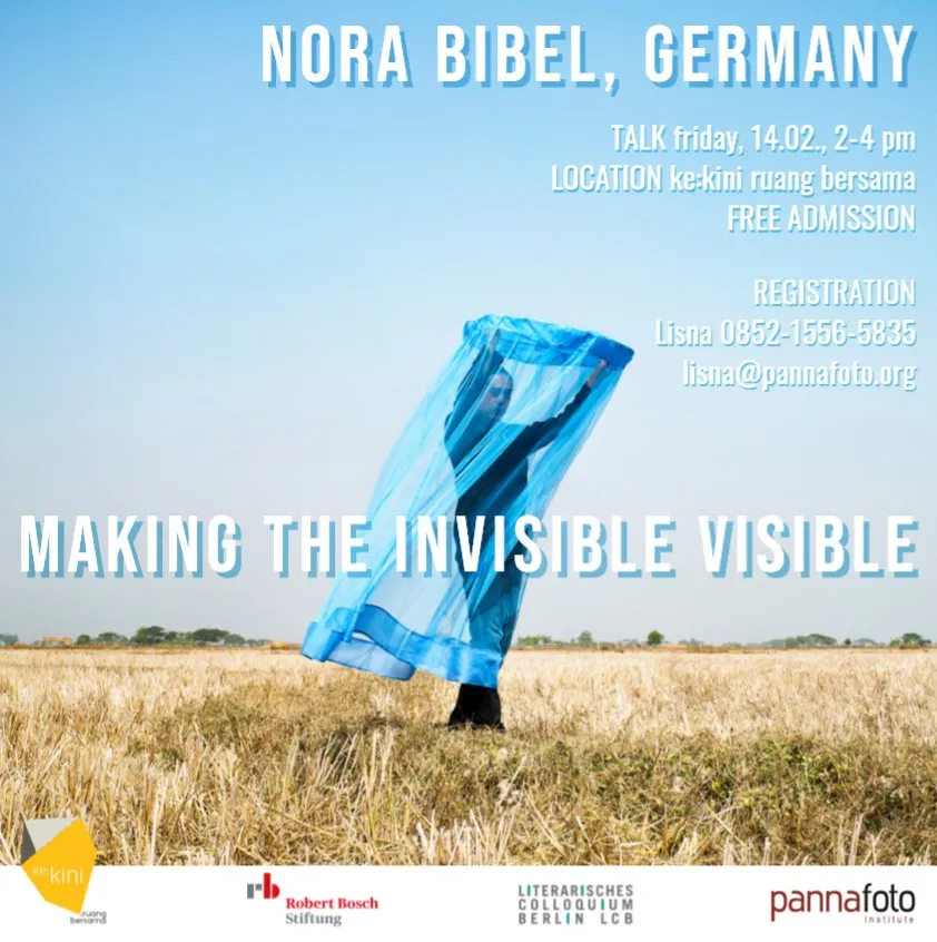 Please join us for a photo talk MAKING THE INVISIBLE VISIBLE by Prof. Nora Bibel (Berlin, Germany). The talk will take place on Friday, 14th February 2020 at 2-4 pm at ke:kini ruang bersama, Jalan Cikini Raya No. 43/45, Jakarta Pusat.