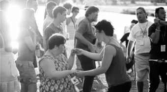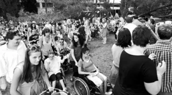 Pula. Zentrum für behinderte Kinder. Nigel Osborne hat ein Thema vorgeschlagen: Das Meer. Aus dem Chaos finden sich Töne zu einer Melodie, Wörter zu einem Vers zusammen. Ein Rhythmus setzt sich gegen einen anderen durch, ein Refrain ist erkennbar. Die freiwilligen Helfer von überall her haben mit den „children, with special needs“ Gruppen gebildet und entwickeln mit ihnen Lieder nach der „Menue-Methode“. Und tatsächlich entsteht in einer knappen Woche ein musikalisch-theatralisches Programm, das sich sehen und hören lassen kann und auf der Insel Briuni bei einem furiosen Fest mit Tanz und Wein gefeiert wird.