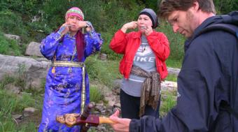 Nicht Vorbild, aber große Inspiration für Ak Torgu, die Sängerin im Roman, ist die schorische Sängerin Tschyltys. Ihre Musik kannte ich vor meiner Reise schon von einer CD, nun konnte ich ihr persönlich begegnen. Und nicht nur das. Tschyltys nahm uns mit zu einer Opferzeremonie am heiligen Ort Arshan, den Kalten Quellen, wo wir nach traditionellem schorischen Ritus den Geistern Wodka, Milch, Wurst und Brot darbrachten. Dieser Ausflug – mit dem Motorkahn; die Kalten Quellen sind nur auf dem Wasserweg zu erreichen – war der Höhepunkt einer Reise, die von Anfang an viel tiefer nach Sibirien hinein führte, als ich, ein unbedarfter Tourist mit einer Handvoll Konversationsbröckchen aus „Russisch Wort für Wort“, es mir je erhofft hätte.