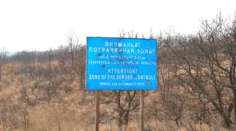 Nina kannte auch einen Fahrer, der mich zum Dreiländereck Russland-Nordkorea-China begleiten konnte. Sergej und ich brachen in den frühen Morgenstunden auf und fuhren einen ganzen Tag lang durch leicht gewellte Hügellandschaften bis an die Grenze zu China und Nordkorea. Unterwegs sammelte ich Bilder, Eindrücke, Stimmen und Geräusche. Außer den Siedlungen für die Familien der Grenzer gab es keine Orte, wir waren in menschenleerer Gegend unterwegs.
